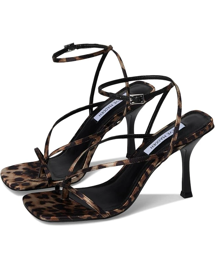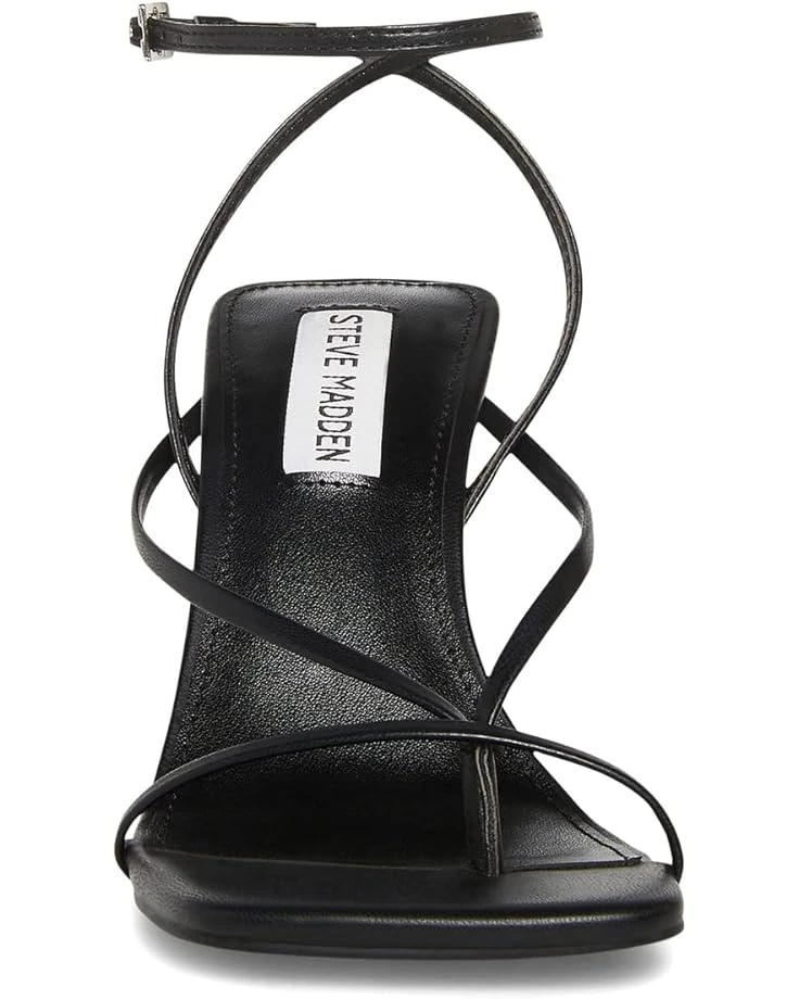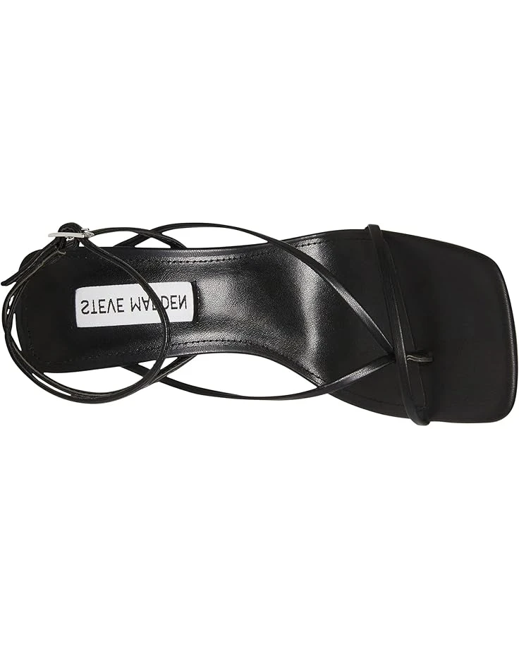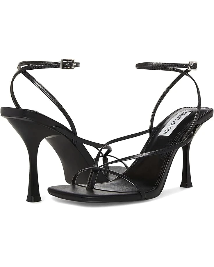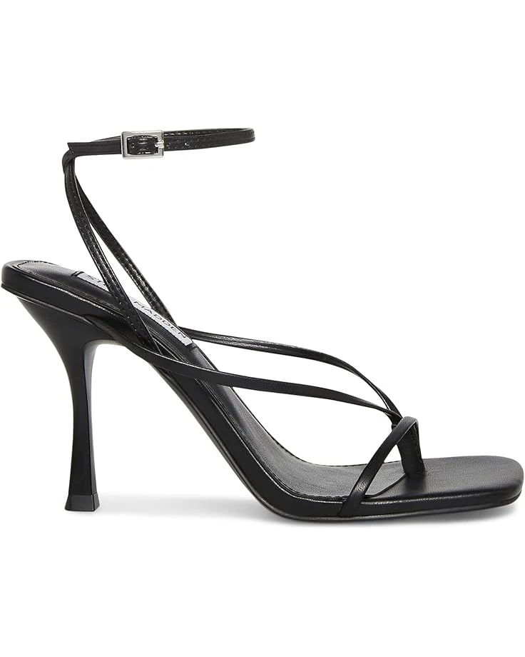- BULLET POINT1: Steve Madden Womens; BULLET POINT2: Strappy heeled sandal; BULLET POINT3: Stiletto heel design; BULLET POINT4: Open square toe;BULLET POINT5: Buckle closure at ankle strap; LINING: Faux Leather; WATER RESISTANCE LEVEL: Not Water Resistant; PRODUCT DESC: Shop NEW Steve Madden Shoes; SOLE: Synthetic Rubber; HEEL HEIGHT: 3.75; HEEL HEIGHT UNIT: inches; HEEL TYPE: Stiletto;INSOLE: Synthetic; CLOSURE:Buckle; COO: China; ITEM WEIGHT: 8;ITEM WEIGHT UNIT: Ounces;OUTER: Faux Leather