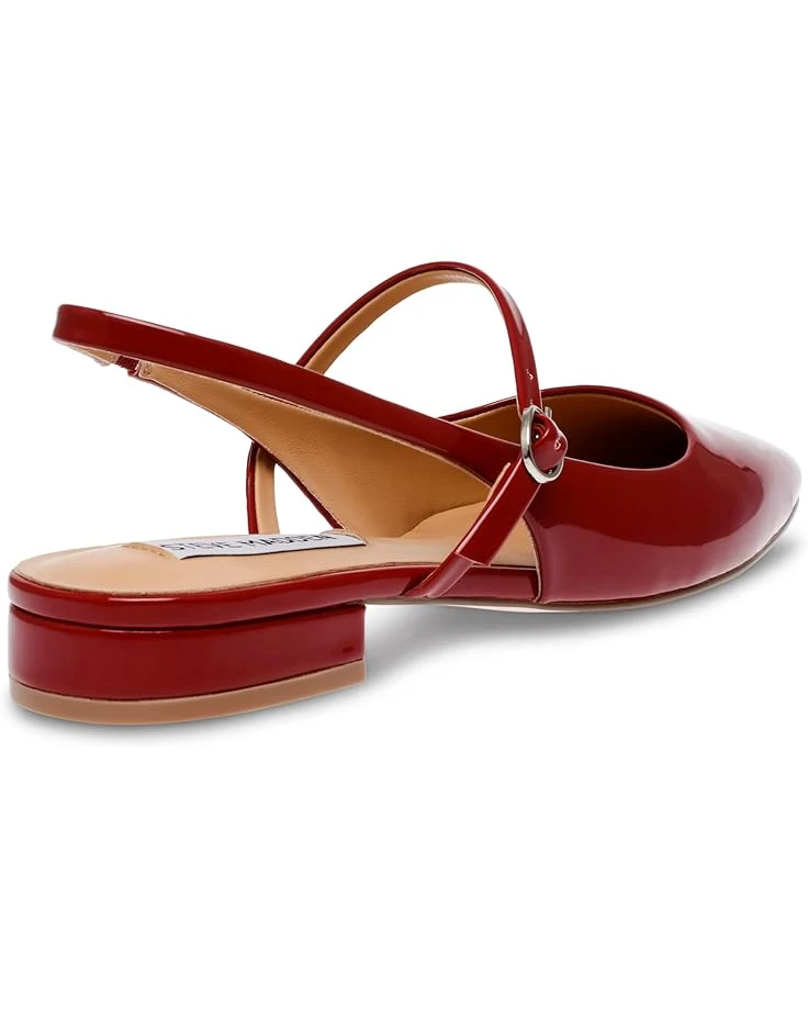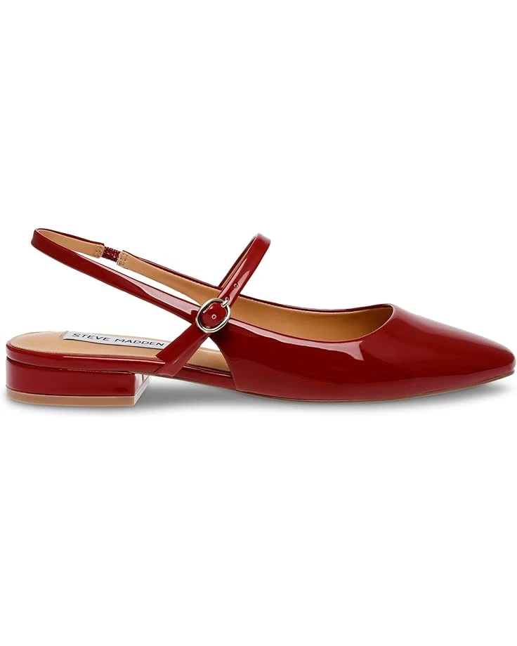 - Reflect effortless chic wearing the comfortable and classy Steve Madden® Baskin Flats. The almond toe pair features rubber upper construction with the addition of a slingback strap and adjustable buckle along the midway strap.