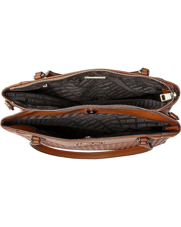 - Enhance the complete look by carrying the Steve Madden® Bfrieda Tote handbag, which features a magnetic snap closure and two top handles.