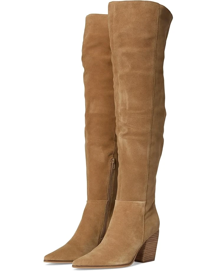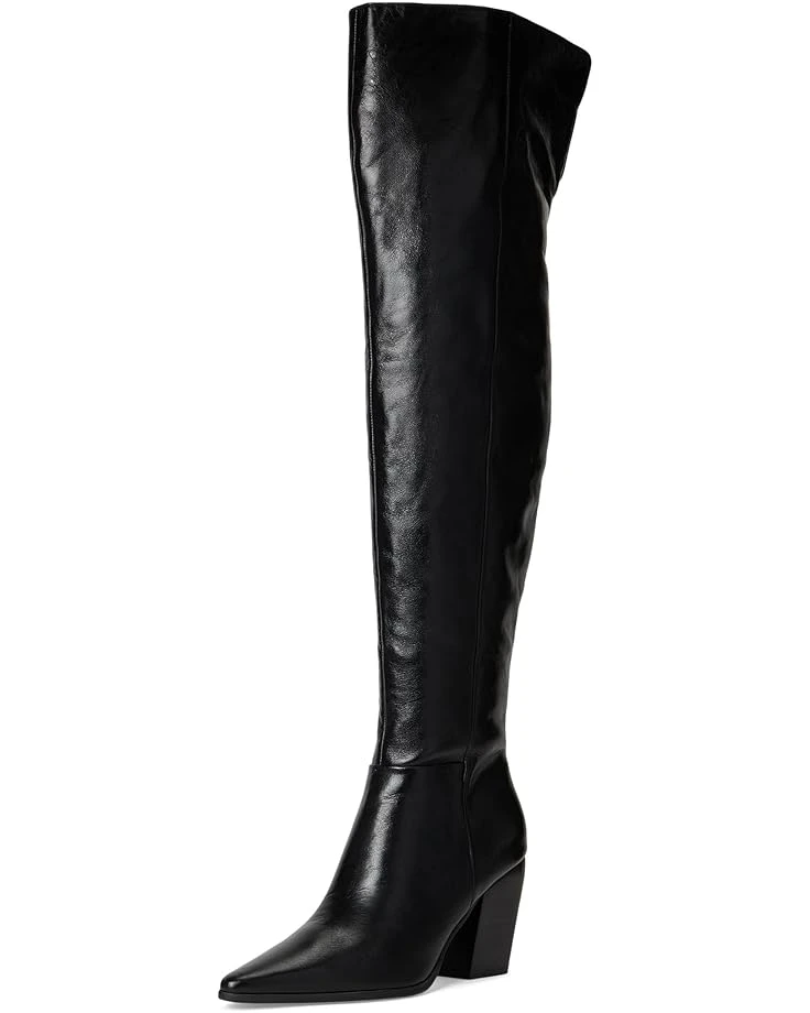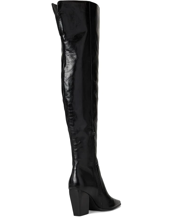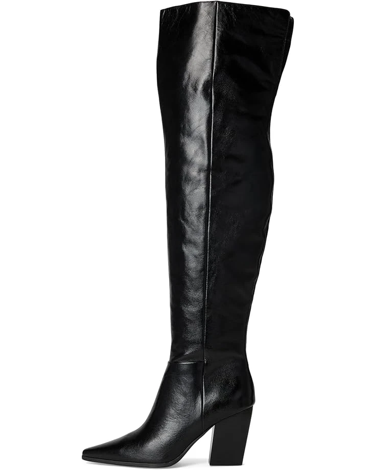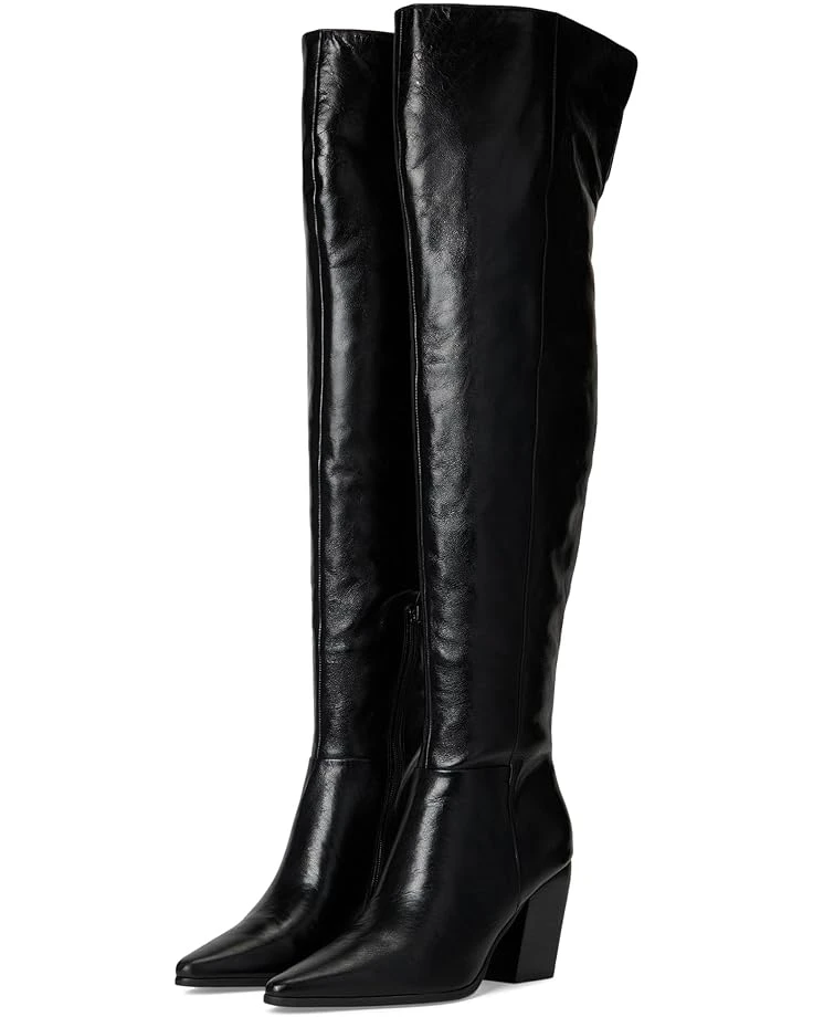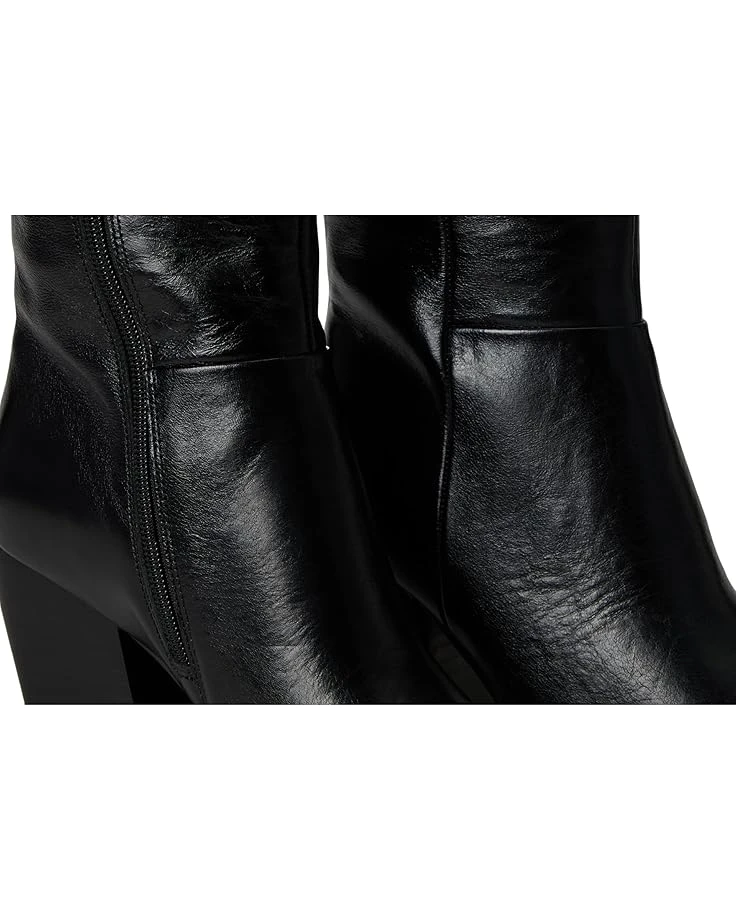 - A half-zippered closure gives the Steve Madden® Bramble knee boots a calf-defining fit with angled block heels and square toe design giving this style a sharp finish. The chic boots feature sleek leather upper, polyurethane lining, and rubber insole.