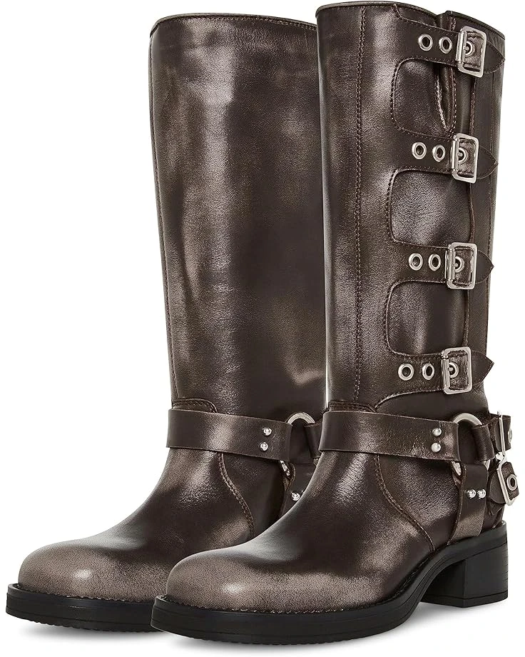 Not the look for me too square toe biker look and bulky with cheap leather look. I wanted a look I had with Vince Camoto knee high with buttons but cannot find any even close.