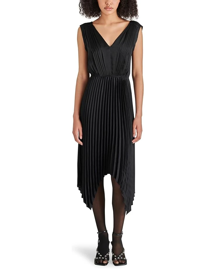 - Make an elegant entry at your next party donning the Steve Madden® Donna Dress. Structured in a fit-and-flare silhouette, the dress showcases a sleeveless bodice with a V-neckline and back and an elasticized waist coordinated with a midi-length skirt featuring a scalloped, asymmetrical hem.