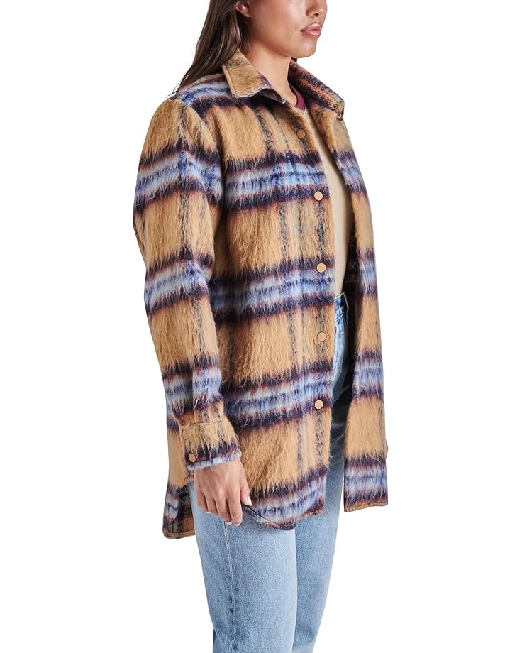 - Curate your fashionable look by wearing the Steve Madden Eldridge Shirt Jacket. This jacket is crafted from soft and comfy fabric. it features a collared neckine and long sleeves with buttoned cuffs. Style this fashionable jacket with your favorite bottomwear.
