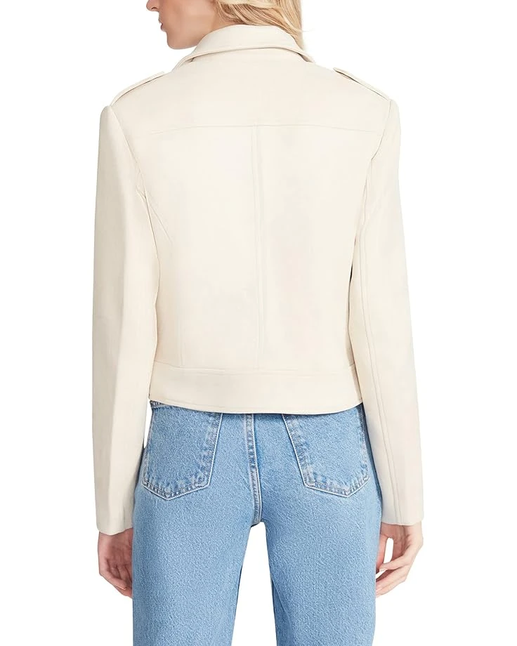 - Bestie you need it. Accentuate your looks with the stlyish Steve Madden® Electra Jacket. The Electra is the perfect little faux suede moto jacket with exposed zip pockets.
