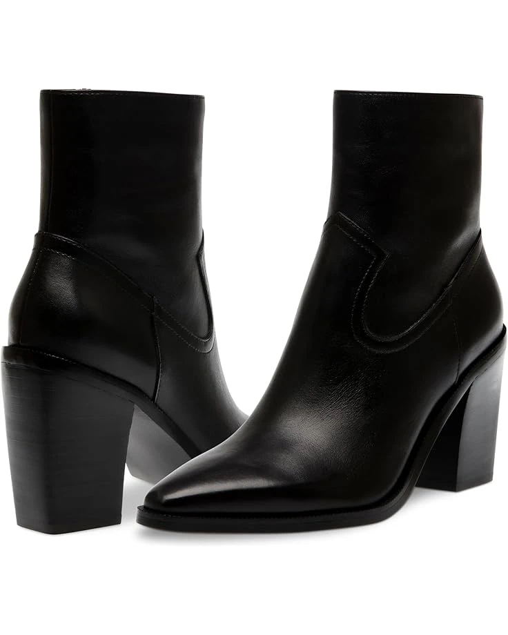 - The Steve Madden® Elene boots are a must-have addition to your shoe collection! Crafted with a leather upper and a synthetic rubber lining, these heeled ankle booties are both stylish and comfortable. The pointed toe design adds a trendy touch to any outfit.