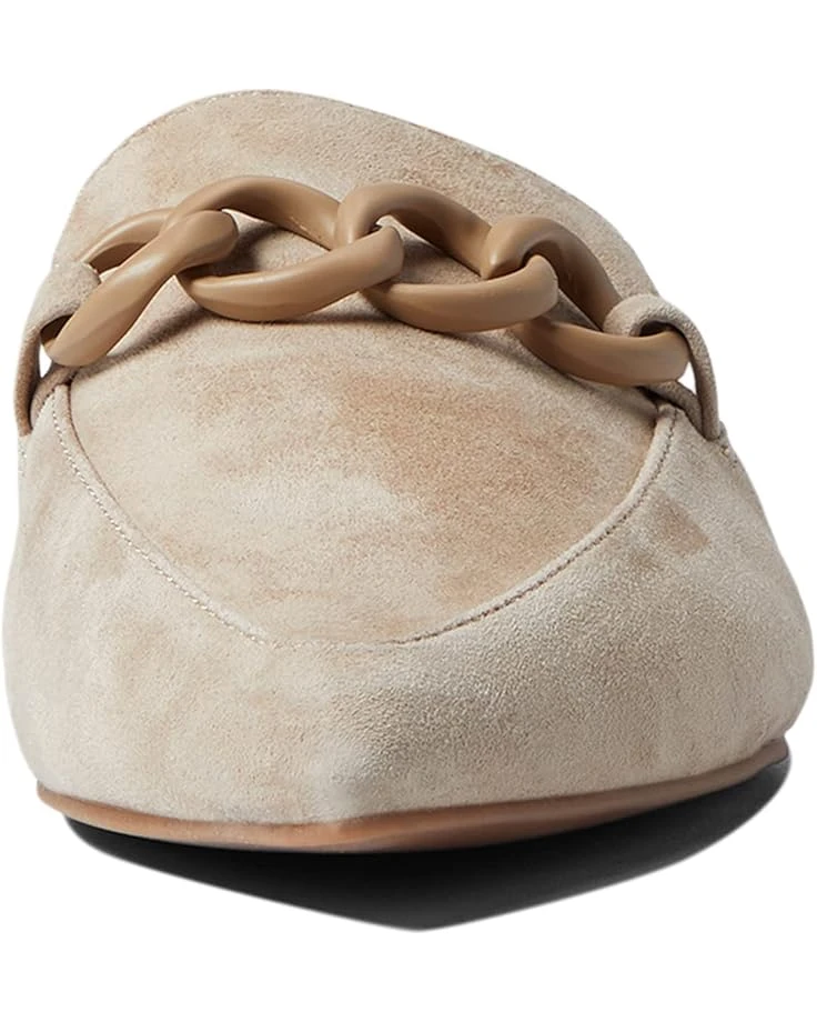 - This slip on mule features a flat style, pointed toe, chain link accent across the top, and cushioned insole.