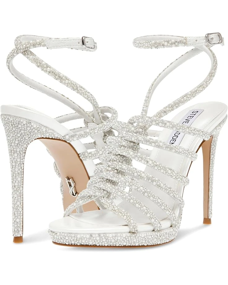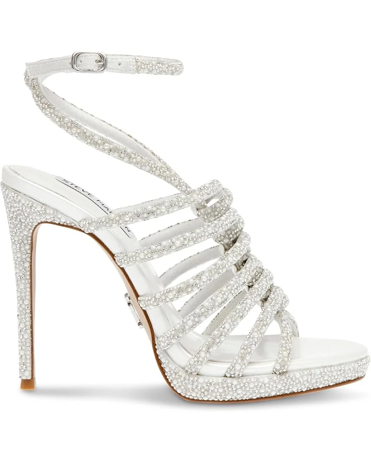 - Embrace every step with elegance in these gorgeous Steve Madden® Givinn stiletto heeled sandals with all-over rhinestone embellishments. It features an embellished ankle strap with buckle closure and open toe silhouette.