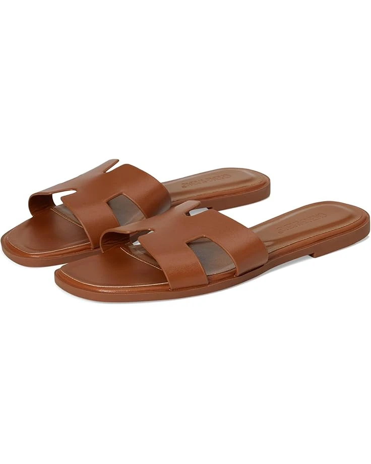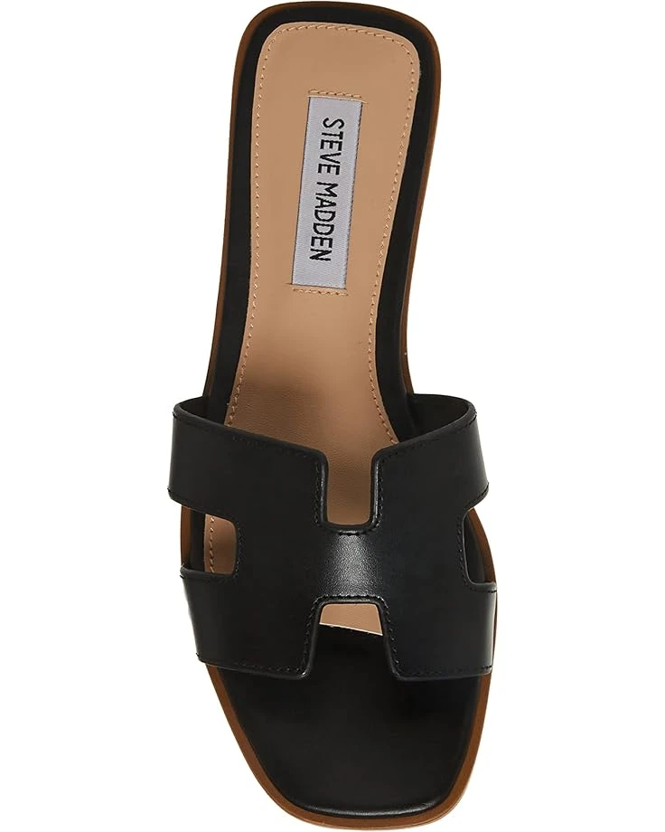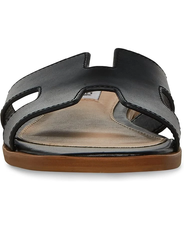 - Geometric cutouts on the wide single strap of the HADYN slide give this flat sandal design a fresh feel.