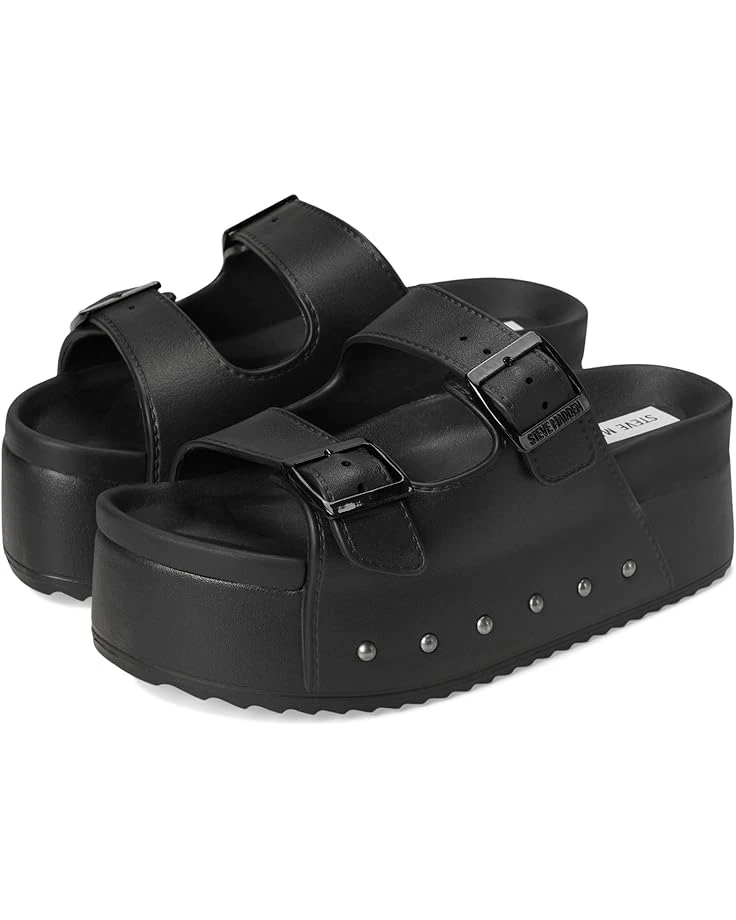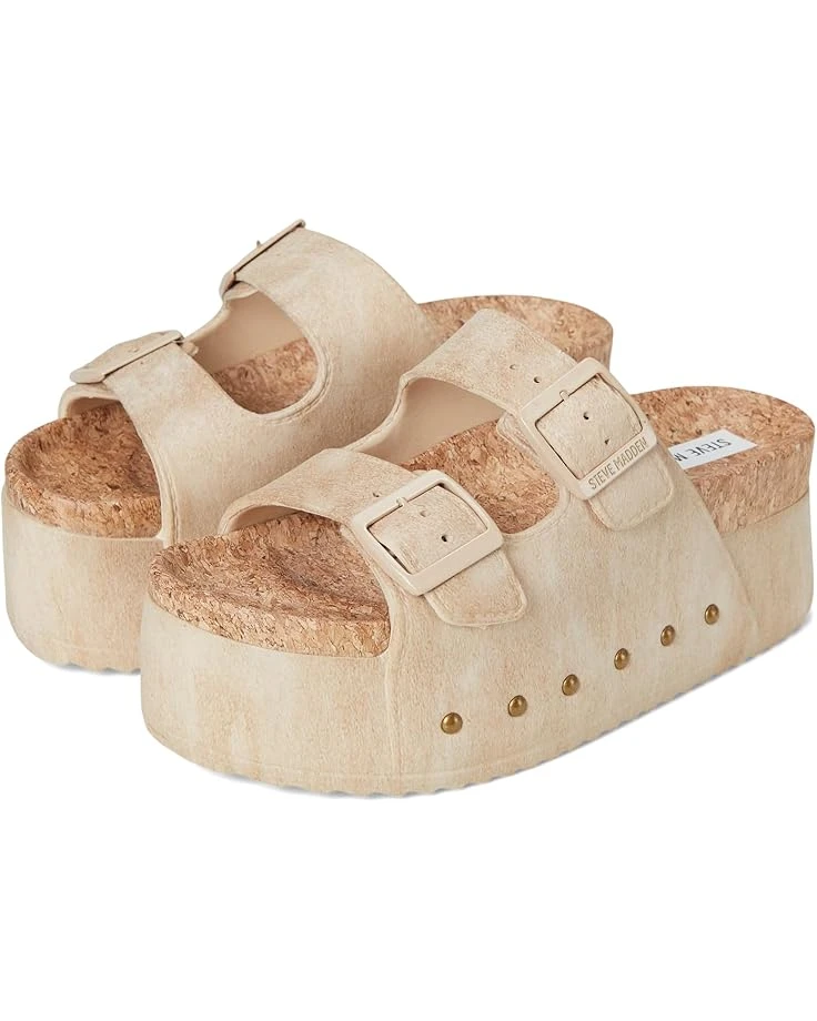 - Make the Steve Madden® Kali Sandals your most fashionable and comfortable companion for outdoor pursuits. The slip-on footwear features suede upper construction with adjustable buckled straps and thick platform heels.