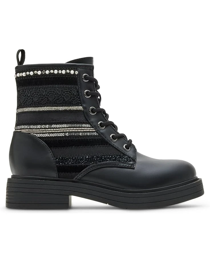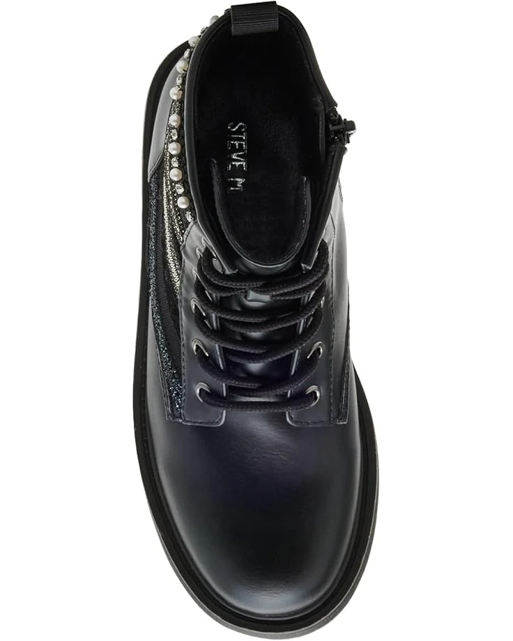 - The Steve Madden® Kids Babbie shoes are lug-soled side-zip combat boots serving kid-approved glam with a punk edge. The ankle-high boots feature PVC upper, cotton lining, and faux leather insole.
