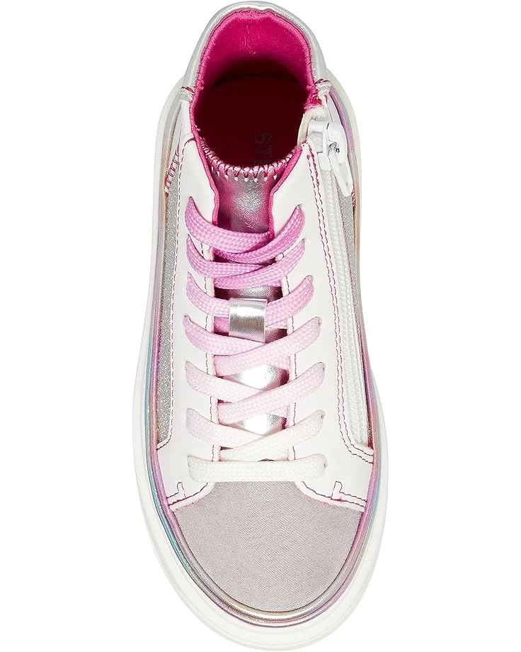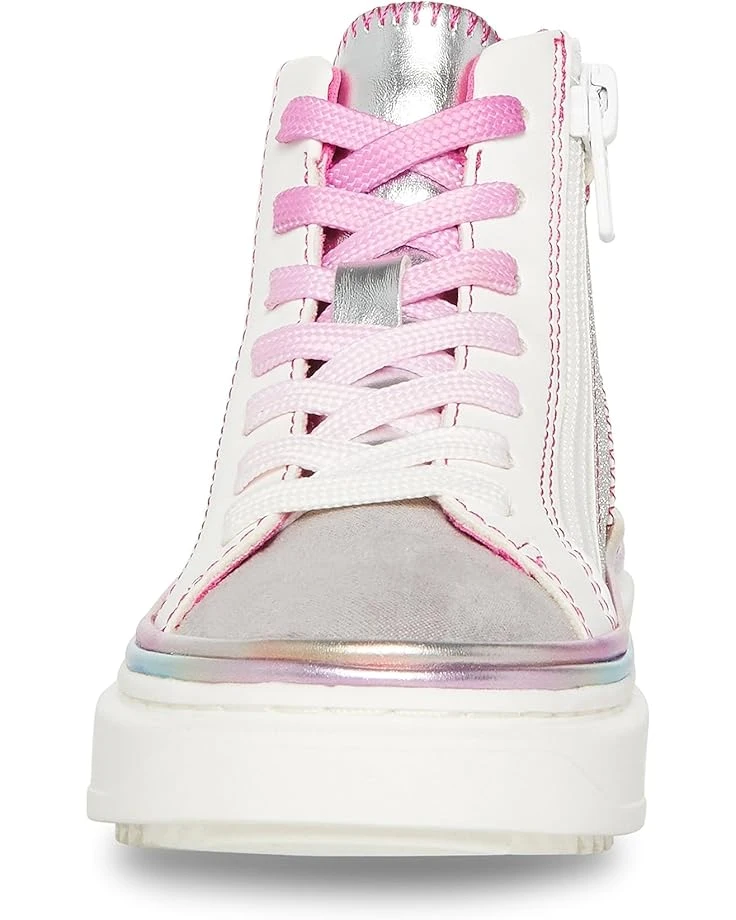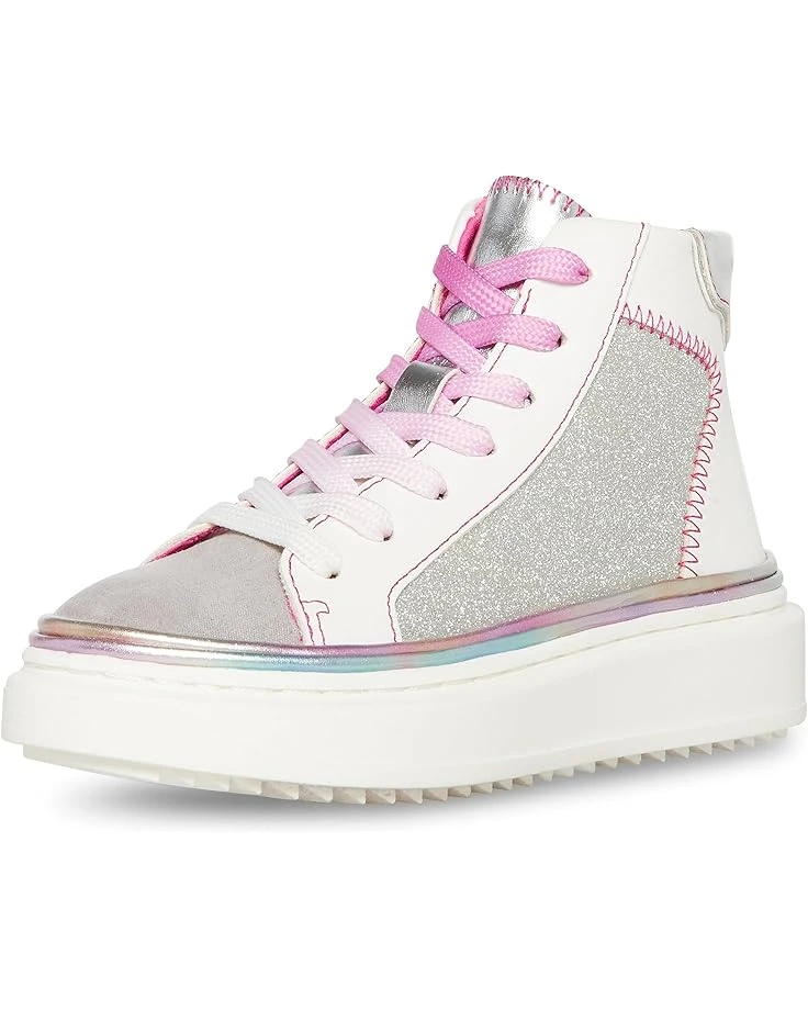 - Amp up the style game wearing Steve Madden® Kids Glossy Sneakers with your best outfits. The sneakers for kids feature a round toe shape, laces for adjustability, and a side zipper closure. Crafted with a microsuede upper, jersey lining, and jersey footbed, the sneakers guarantee the utmost comfort and reliability.