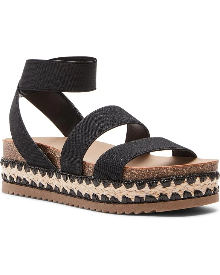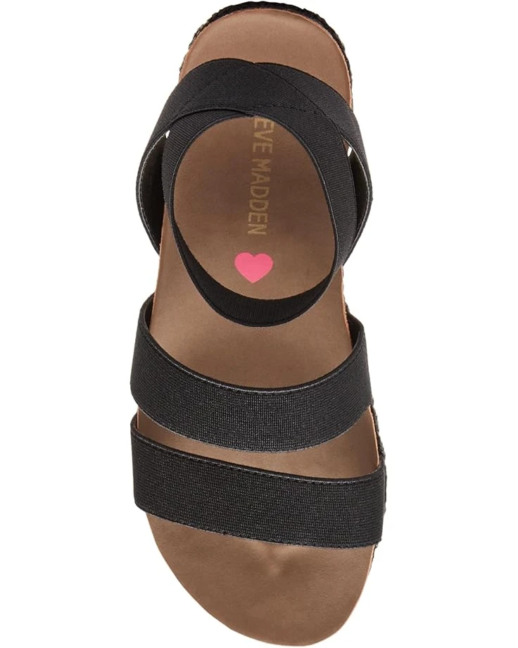- Let your junior enjoy an easy, breezy style while walking with confidence no matter where they go wearing the Steve Madden® Kids Krissy Espadrille Sandals. Topped with a strappy textile upper, the shoes come integrated with a molded synthetic footbed and a cork-wrapped midsole for superior cushioning and support. The stretchy elasticized ankle strap keeps those young feet perfectly in place while the embroidered, raffia-wrapped platform sole lends a chic appeal to this footwear.
