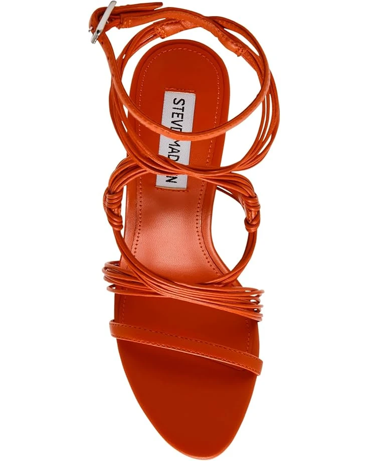 - Indulge yourself in superior comfort by wearing the sophisticated and luxurious Steve Madden® Lele heels. These sleek stilettos have a beautiful clustered cord strap design, wrapped and knotted over the foot to secure around your ankles. The lightweight dress sandals have leather upper, and synthetic rubber lining with rubber insole. These open-toe pointed heels also have an adjustable ankle buckle closure for custom fitting.