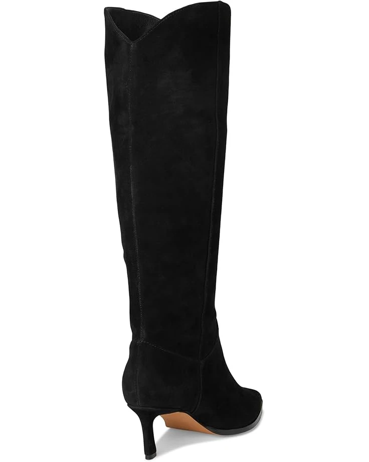 - Elevate your style wearing the Steve Madden® Lenya – sleek, knee-high boots featuring trendy kitten heels and pointed toes for a sophisticated touch. Perfect for pairing with any outfit, this boot will add a touch of elegance to your wardrobe. The stylish boots have suede upper, synthetic rubber lining, and rubber insole.