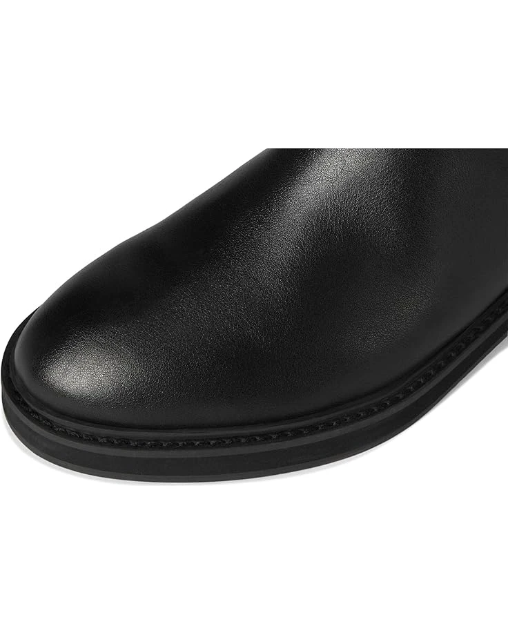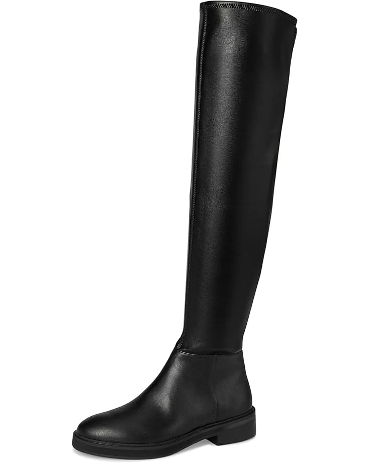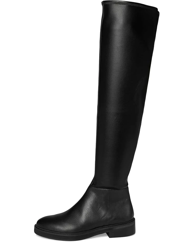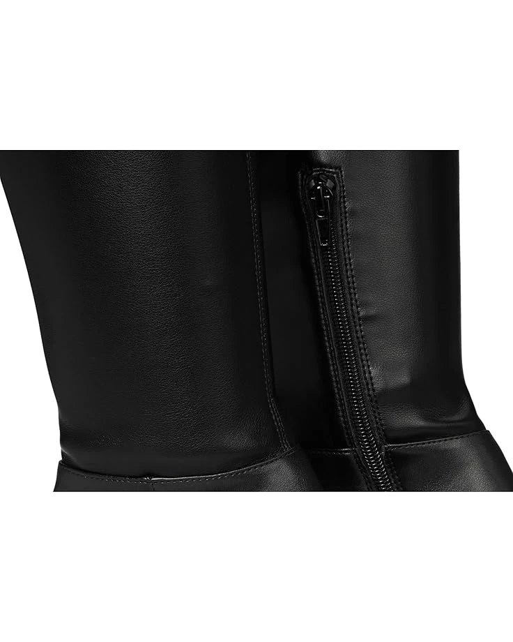 - The Steve Madden® LEZA round toe knee boot gives a sleek and defined silhouette with a stretch fabric construction and platform sole with a block heel. Crafted from leather upper, synthetic rubber lining, and rubber insole, this pair of boots features zippered side entry, and knee-high silhouette.
