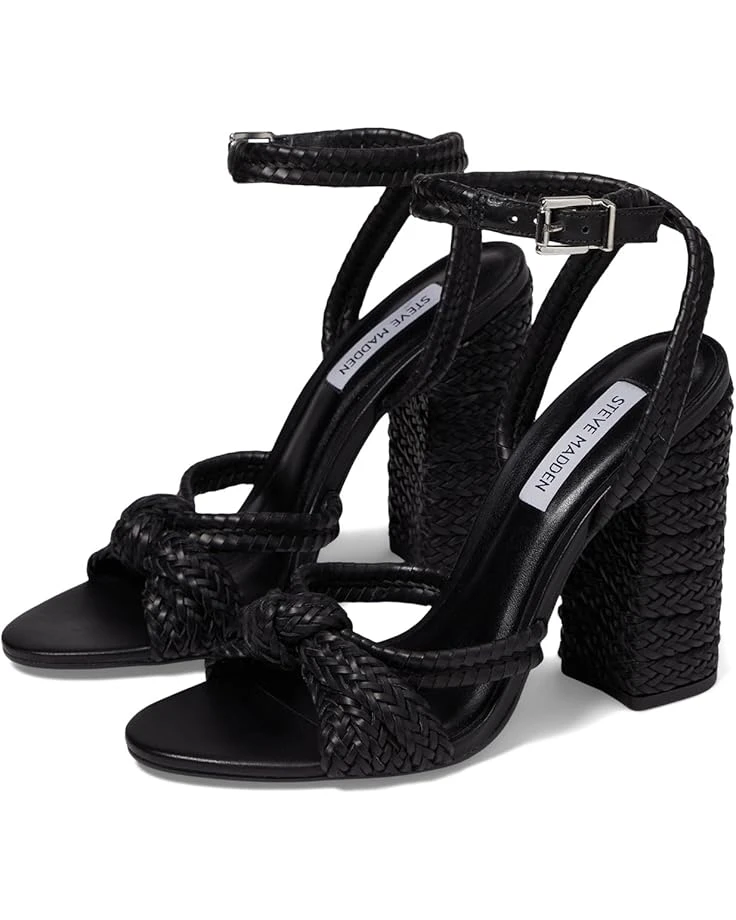 - Go to the party in a stunning style wearing Steve Madden® Malou with your flowy gowns. It features leather upper, rubber lining, and woven toe with ankle strap. A block heel, cushioned rubber insole and slip-on style makes the footwear an essential piece for parties.