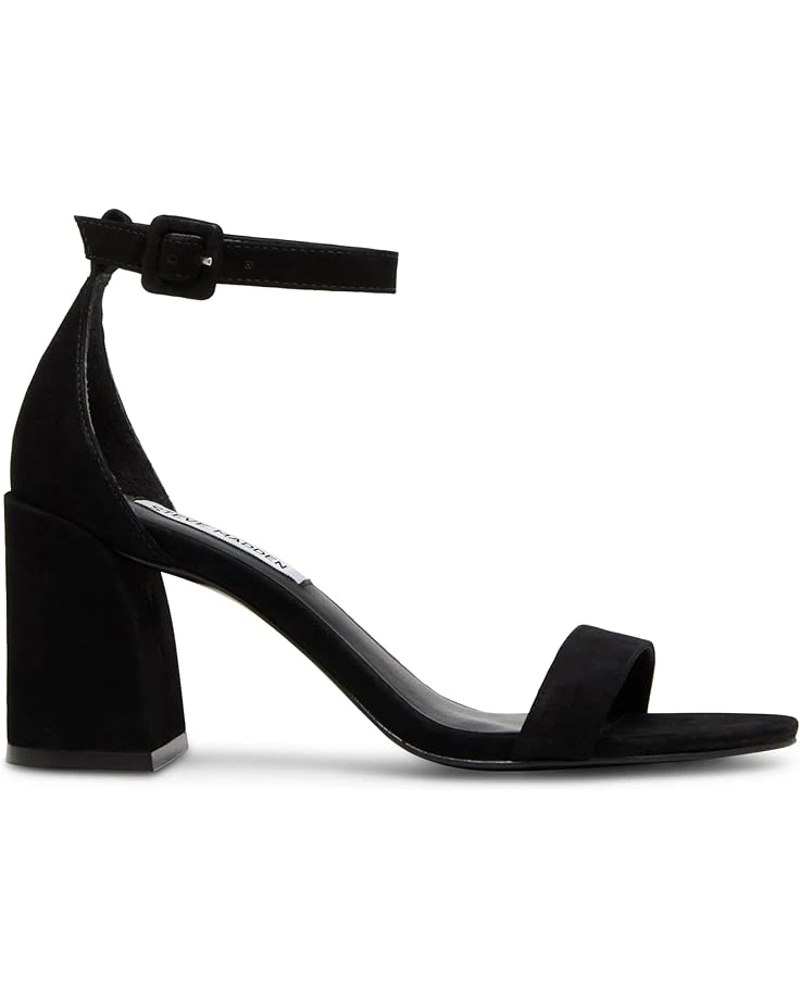 - Embrace classic versatility without sacrificing comfort wearing the Steve Madden® Matty Sandals. The block-heeled monochrome footwear features leather upper and lining construction with buckled ankle strap closure.