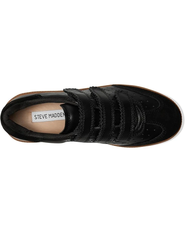- Feel the difference in wearing the style icon, Steve Madden® Momentum! This low-top velcro sneaker is designed to keep up with your fast-paced life, featuring a sleek leather upper for a polished look and triple velcro closure for easy, secure wear. The cotton lining ensures breathable comfort, while the rubber insole and synthetic rubber outsole provide lasting durability and traction. Perfect for casual outings or athletic pursuits, Momentum delivers the ultimate blend of style and practicality.