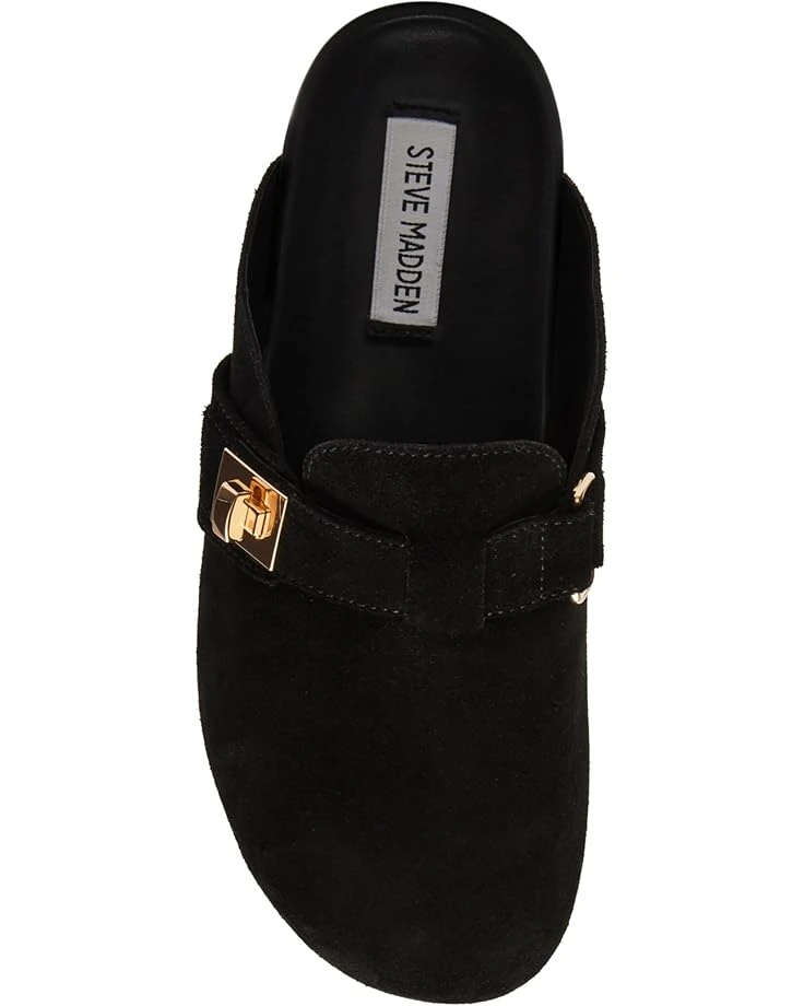- Bring the ideal mix of style and comfort to your closet with the Steve Madden® Money shoes. The slide-on style features branded hardware on the suede uppers. The closed, rounded toes create clean silhouettes.