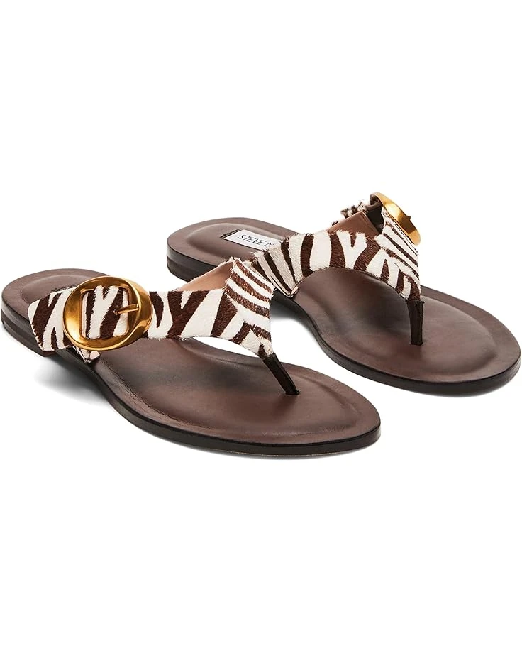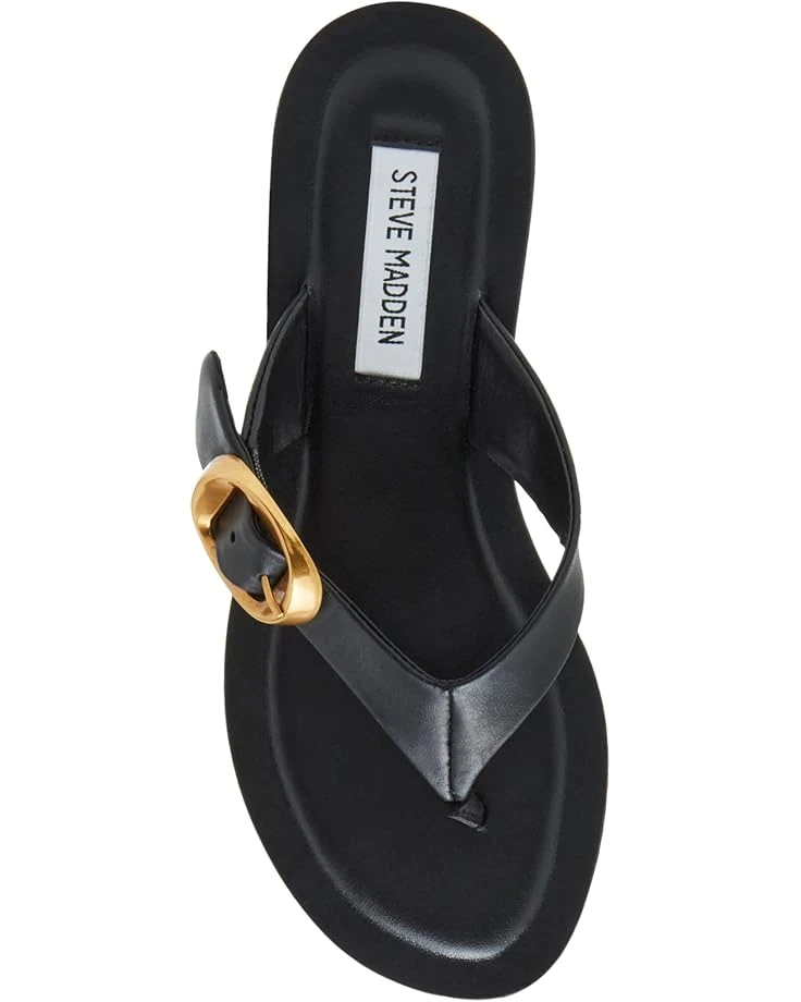 - Channel your style narrative in utmost sophistication wearing the Steve Madden® Rays Sandals. The slip-on footwear features leather upper construction with side buckle detail on the toe-post strap.