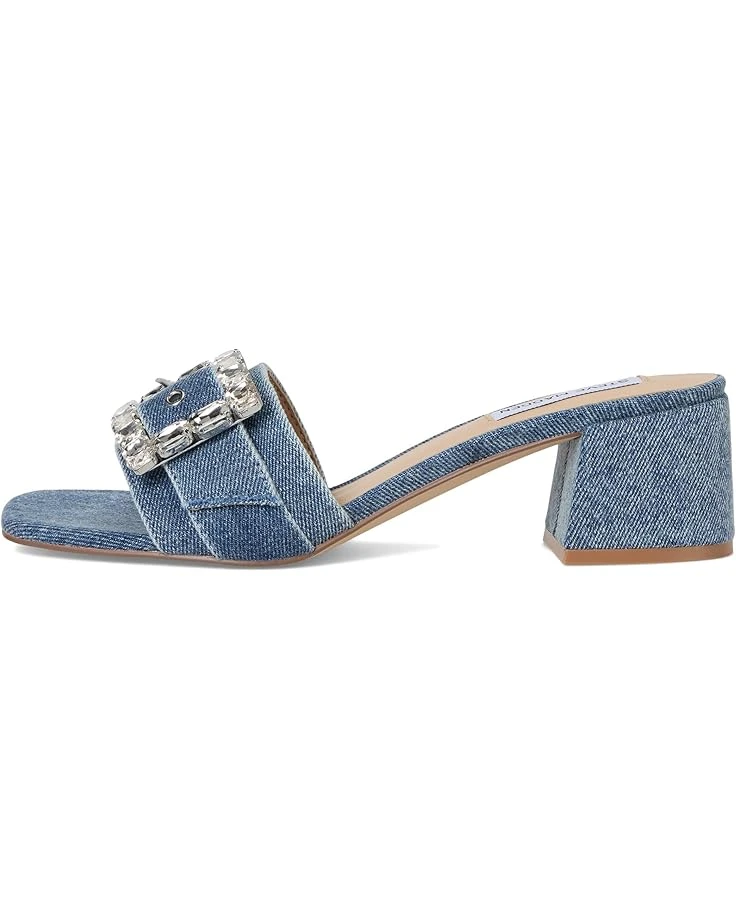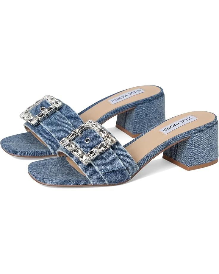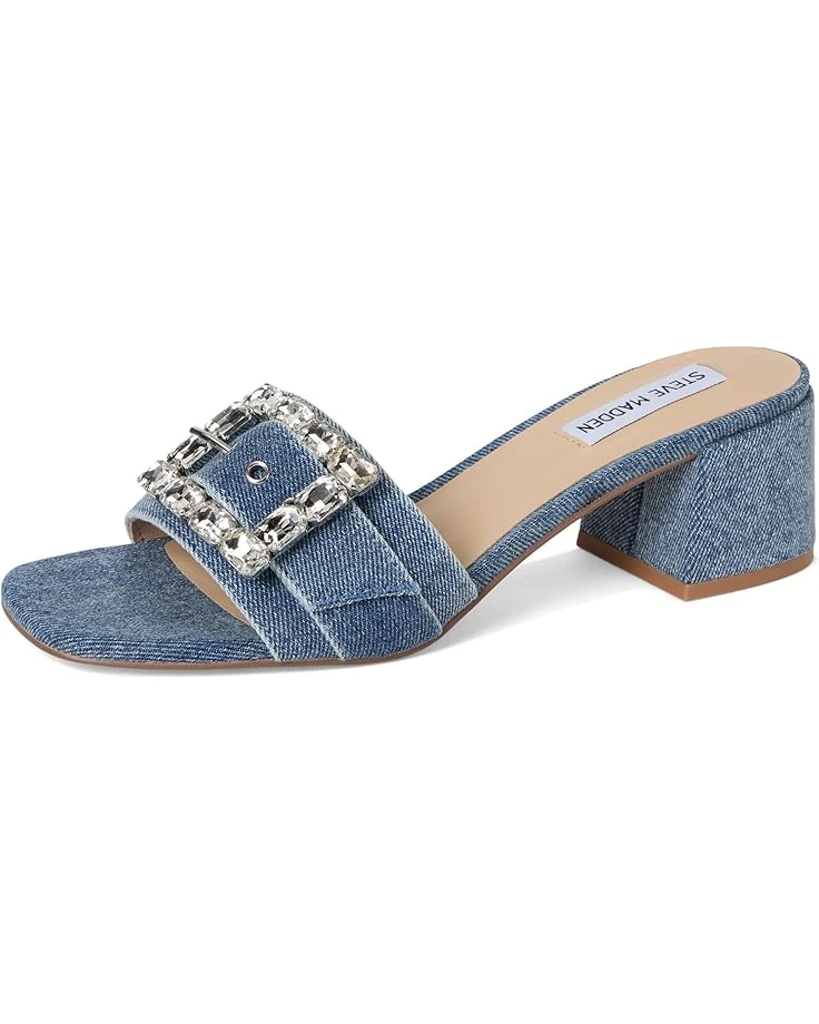 - Step into elegance wearing Steve Madden® Sandre! Featuring a fabric upper and a chic buckle design, these open-toe black heel sandals offer timeless versatility and sophisticated style. The slip-on convenience, coupled with a comfortable rubber insole and durable outsole, ensures all-day wearability.