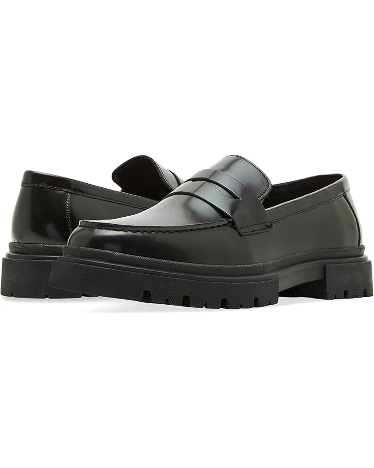 - Step into sophistication wearing Steve Madden® Zephyr Penny Loafer! This contemporary men’s loafer features a premium leather upper, textile and faux leather lining, and a faux leather insole for exceptional comfort. The chunky rubber outsole offers durability and traction, perfect for everyday wear. Easy pull-on design ensures effortless elegance. Crafted with exquisite box leather, the Zephyr combines classic style with modern flair, making it a versatile addition to any wardrobe.